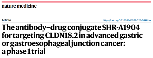 近日,靶向紧密连接蛋白18.2(CLDN18.2)的抗体药物偶联物(ADC)SHR-A1904治疗晚期胃癌或胃食管结合部癌(GC/GEJC)的研究数据在国际顶级期刊《Nature Medicine》(IF:50.0)正式发表1。该研究成果来自中山大学肿瘤防治中心徐瑞华教授牵头开展的“注射用SHR-A1904在晚期实体瘤患者中的安全性、耐受性、药代动力学及疗效的开放、单臂、多中心的I期临床研究”。结果显示,SHR-A1904在既往接受过治疗的CLDN18.2中高表达晚期GC/GEJC患者中表现出令人鼓舞的临床疗效。
